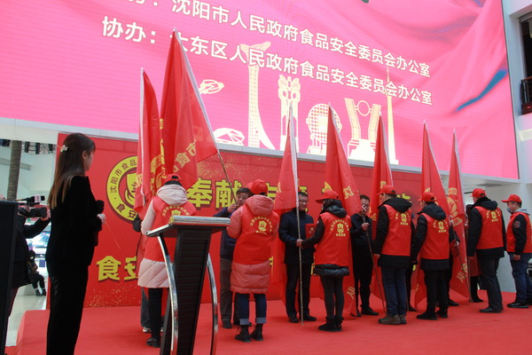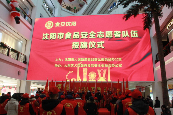 12月18日上午,“沈阳市食品安全志愿者队伍聘任及授旗仪式”在大东区中街新玛特举办。市政府食安办、市委宣传部、市市场监管局、市教育局、市农村局、市卫健委、市科协相关负责人,各区县(市)政府食安办、各志愿者队伍代表共百余人参加了仪式。标志我市“食安沈阳”食品安全志愿者队伍正式成立并开展志愿服务活动。