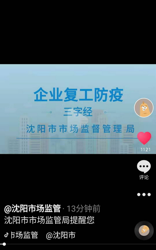 沈阳市市场监督管理局:动画“三字经”指导复工企业防控疫情