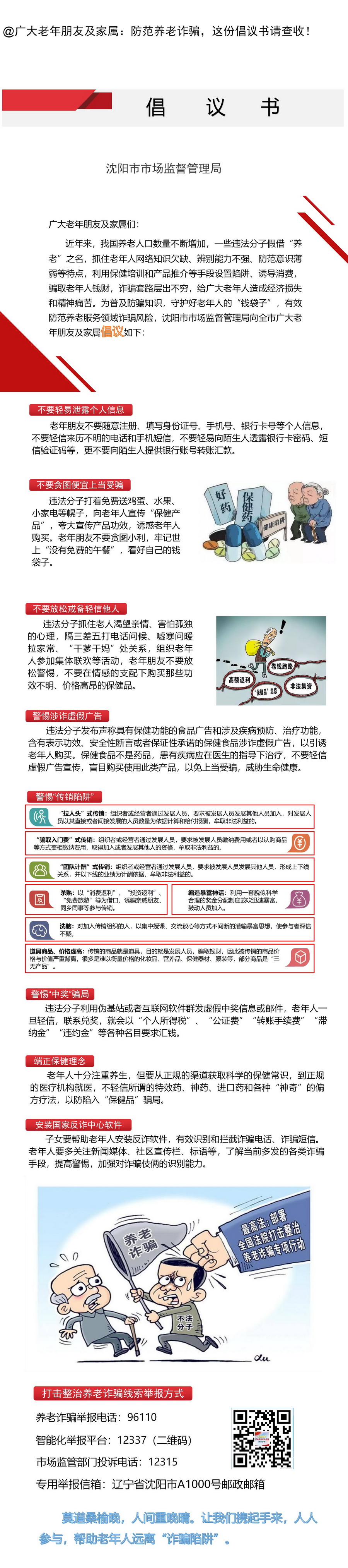 沈阳市市场监督管理局打击防范养老诈骗倡议书