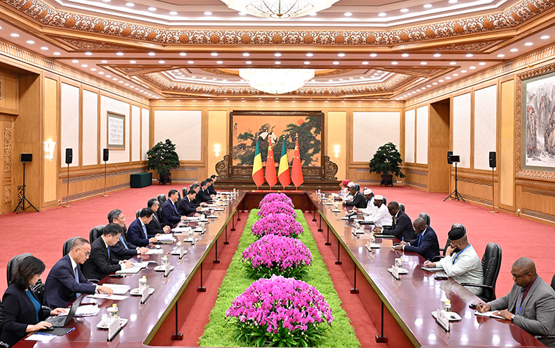 9月2日上午,国家主席习近平在北京人民大会堂会见来华出席中非合作论坛北京峰会的马里总统戈伊塔。新华社记者 殷博古 摄