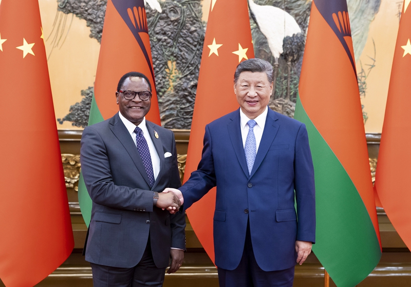 9月3日上午,国家主席习近平在北京人民大会堂会见来华出席中非合作论坛北京峰会的马拉维总统查克维拉。新华社记者 翟健岚 摄