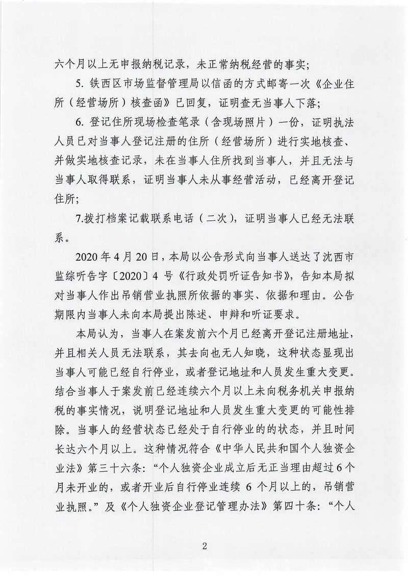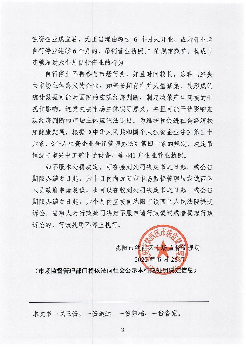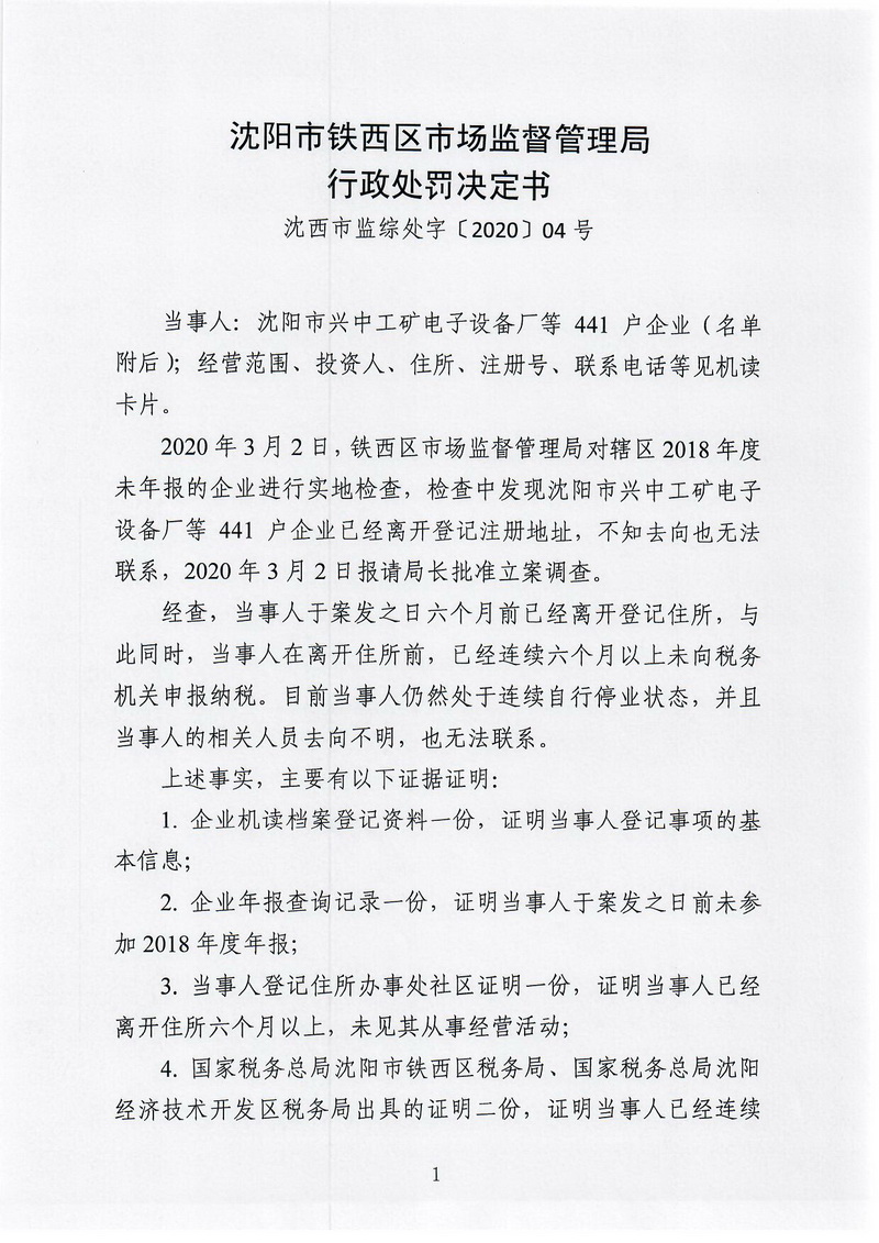 沈阳市铁西区市场监督管理局行政处罚决定书(沈西市监综处字〔2020〕04号)