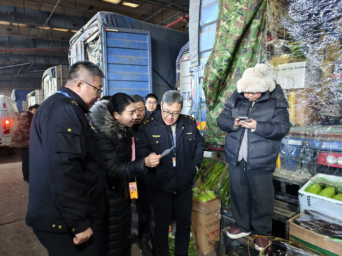 1月20日,市市场监管局联合市农业农村局对沈阳最大的食用农产品交易中心——沈阳盛发菜果批发有限公司开展联合速测,现场选取白菜、黄瓜、茄子、西红柿等4种消费量较大的蔬菜作为速测样品,检测结果均为阴性(合格)。同时对食用农产品经营者索取承诺达标合格证情况进行检查。