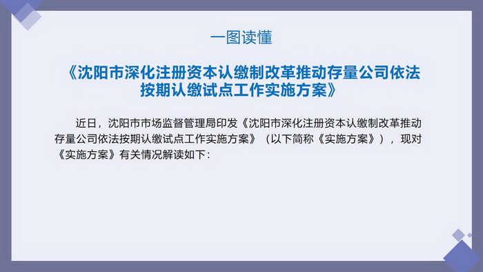 《沈阳市深化注册资本认缴制改革推动存量公司依法按期认缴试点工作实施方案》图解